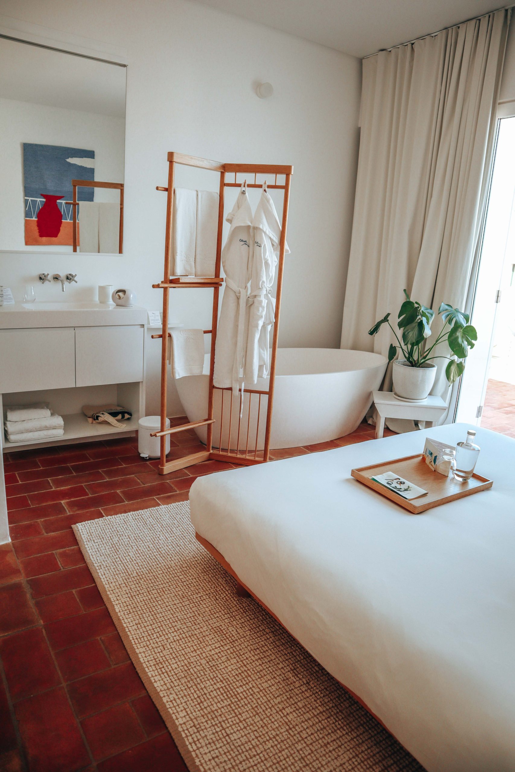 Wil je ultiem ontspannen? Boek dan een kamer bij Memmo Baleeira. Dit mooie hotel heeft beschutte loungeplekjes bij het zwembad, een uitgebreide theebar bij het ontbijt, een uitstekende yoga shala en een te gekke cocktailbar. Als je voor het eerst een nose dive wilt wagen, boek dan je eerste surfles gewoon via het hotel. Liefhebbers kunnen bij het ontbijt mimosa’s maken en de fancy havermelk lattes komen gewoon uit de machine! Ik heb, omdat het zo lekker was, twee avonden gegeten bij het hotelrestaurant Fornaria. Probeer de ceviche en bestel een verfrissende cocktail bij de fantastische cocktailbar!
