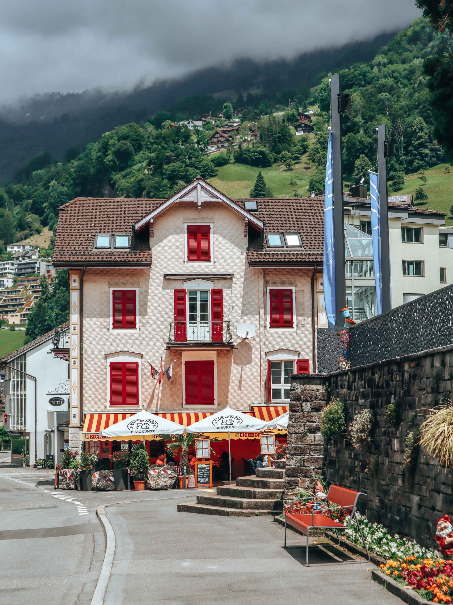 For lunch back in Vitznau, try Restaurant Rütli, Brüh Hafenrösterei (great vegan dishes), or Nostalgie Bar right by the water.